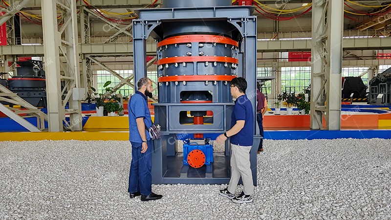 展廳參觀之后,朱經(jīng)理又帶領(lǐng)客戶來到我們的磨粉機生產(chǎn)車間,以磨輥和磨環(huán)為例,向客戶詳細(xì)介紹了超細(xì)磨粉機的易損件都有哪些,以及易損件的保養(yǎng)維護方法和使用技巧是什么。