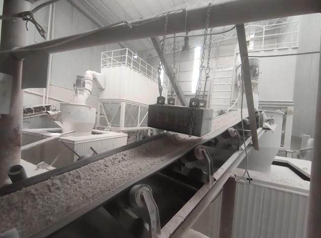 隨后礦石將被輸送入一級鄂式破碎機(jī)破碎至150毫米以下,同時均勻落在底部皮帶輸送機(jī)上?,F(xiàn)場工作人員負(fù)責(zé)檢查篩選出皮帶上的低品位礦石,以有效提高礦石的白度與品位。經(jīng)過挑選后再次進(jìn)入二級錘式破碎機(jī),進(jìn)一步細(xì)碎。